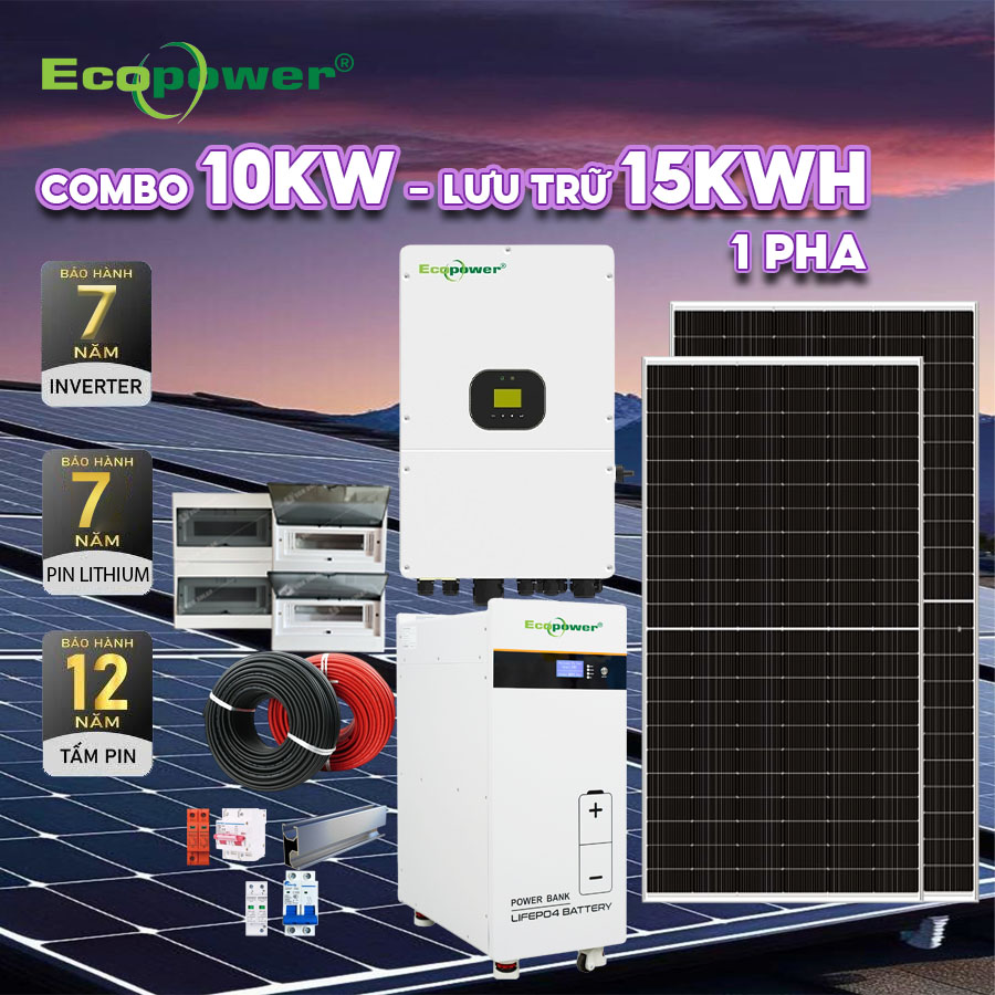Trong combo này, Eco Solar đề xuất bạn sử dụng biến tần Hybrid thương hiệu Ecopower – dòng sản phẩm uy tín, chất lượng, tích hợp nhiều tính năng thông minh, vận hành ổn định và hỗ trợ giám sát từ xa dễ dàng qua điện thoại.
