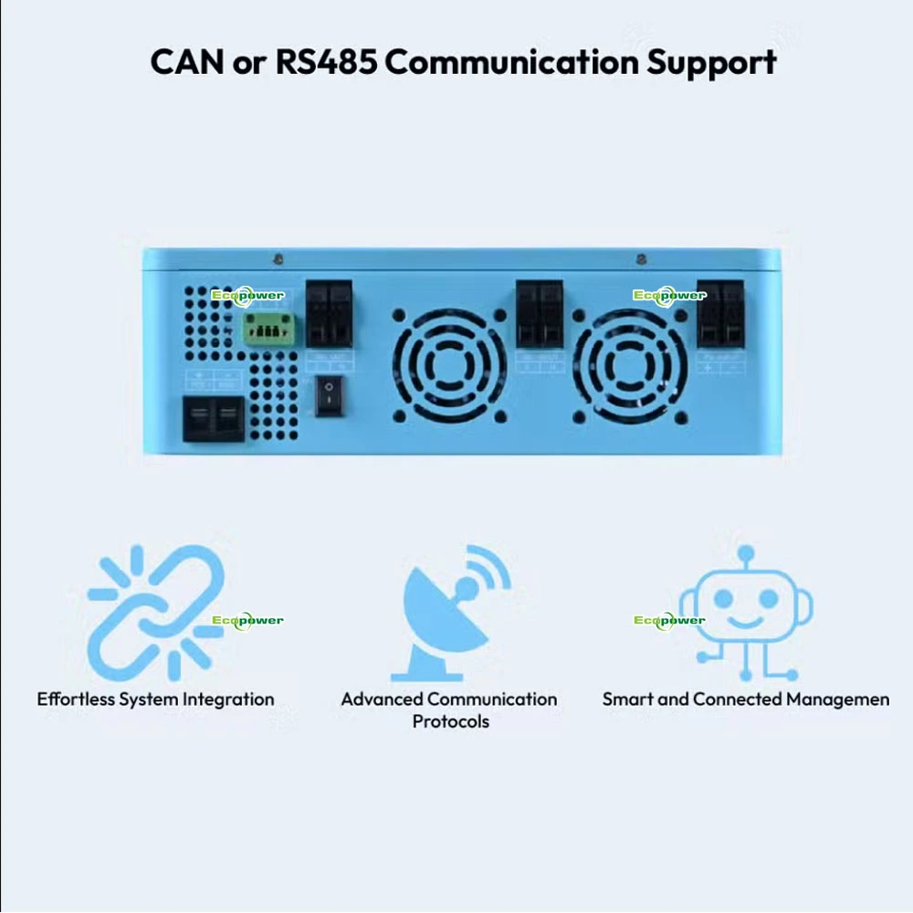 Được trang bị tính năng kích hoạt kép, Ecopower BS 6KW 48V có thể kích hoạt lại pin lithium-ion đang không hoạt động bằng năng lượng mặt trời hoặc điện lưới, đảm bảo sử dụng pin hiệu quả và độ tin cậy lâu dài.